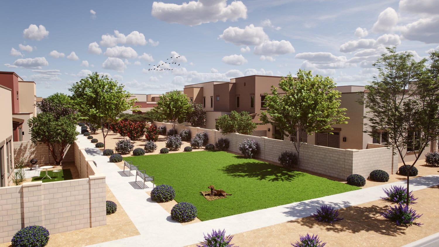 Greystar’s master plan for Peoria Place will introduce more than 600 apartments and build-for-rent homes, as well as a 400,000 square-foot space dedicated to logistics. The project is made up of 255 duplexes as well as one- and two-story detached homes and provides a build-for-rent opportunity near Grand and Olive avenues.