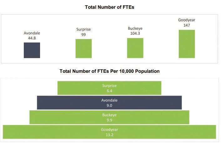 Avondale allocates fewer full-time employee positions for parks, recreation and library services compared to similar cities. (City of Avondale)
