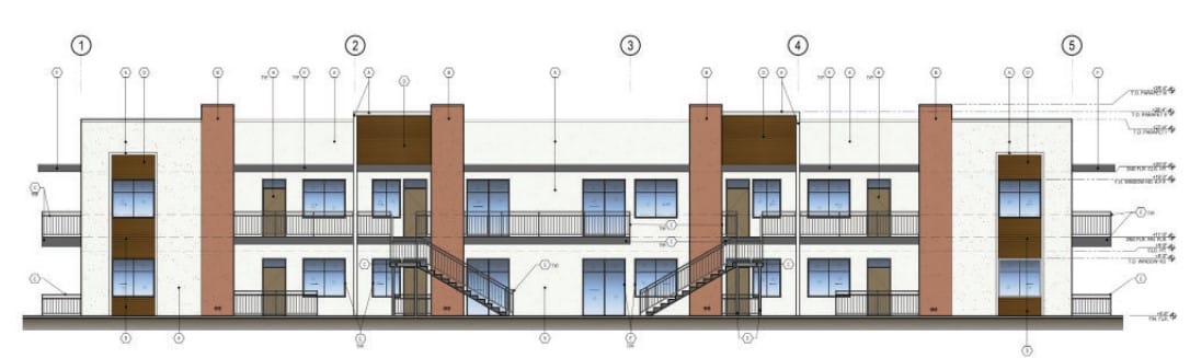 The proposed two-building addition will feature one- and two-bedroom apartments in two-story, wood-framed buildings.