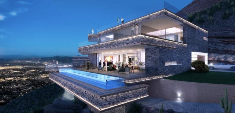 A rendering of a 7,000-square-foot estate that could be built on an exclusive lot near the top of Camelback Mountain. via Architekshon Inc. By Angela