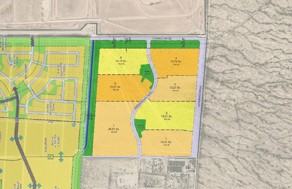 Councilmembers will vote whether or not to approve the final subdivision design for Red Valley Ranch, a 164-acre neighborhood at the southwest corner of Farrell and Anderson Roads, just south of the Volkswagen Proving Grounds. The land currently consists of empty desert.