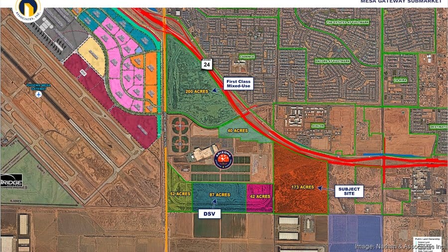 The land is at the northeast corner of Pecos and Crismon roads on the former GM Proving Grounds, which is owned by Mesa BA Land LLC and Pacific Proving LLC, which in turn are owned by Levine Investments and Andrew Cohn.