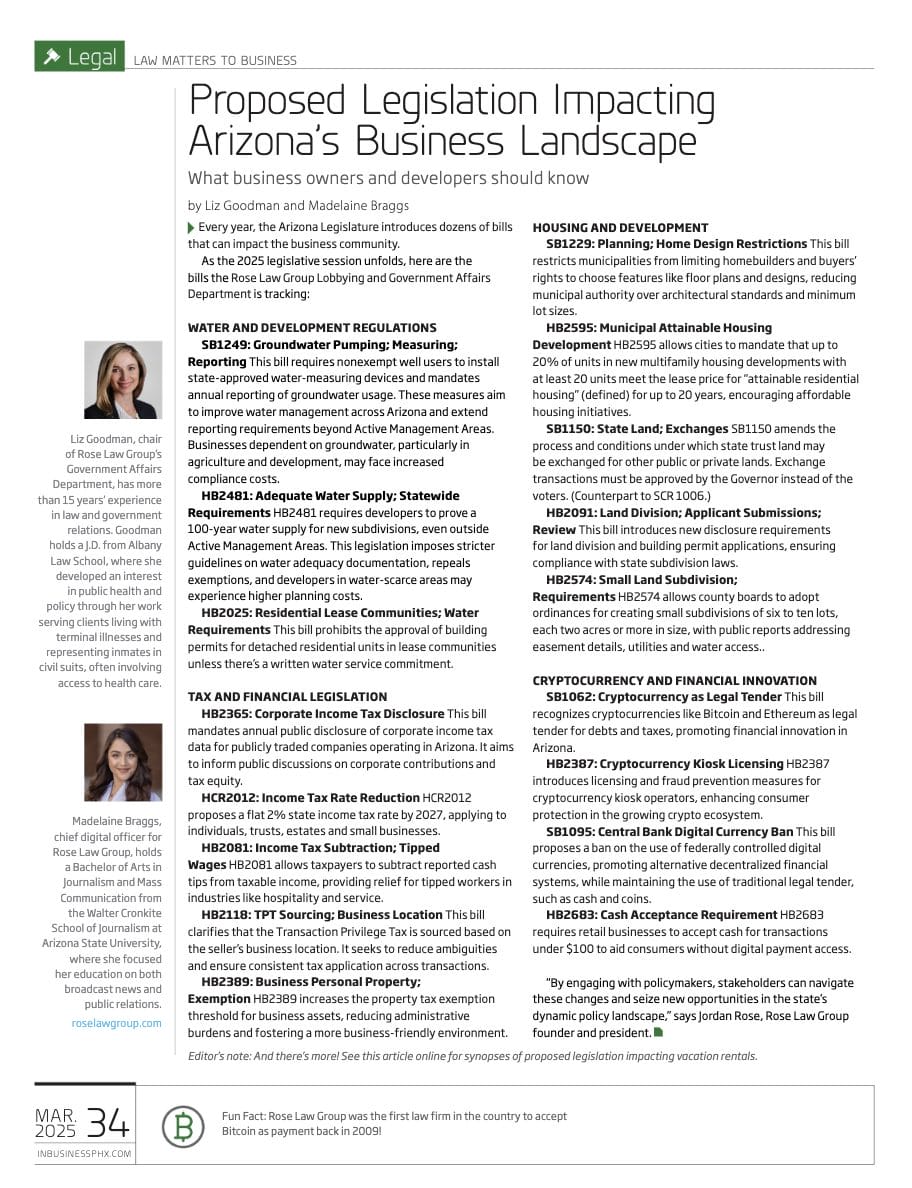 By Madelaine Braggs and Liz Goodman, Rose Law Group’s Chair of Government Affairs