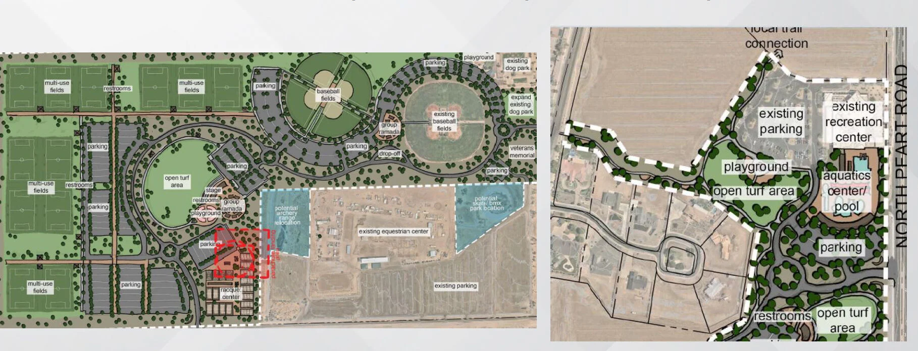 The city’s Sports Complex Concept plan envisions new baseball, softball, soccer and multipurpose fields as well as a new aquatics facility with a heated pool.