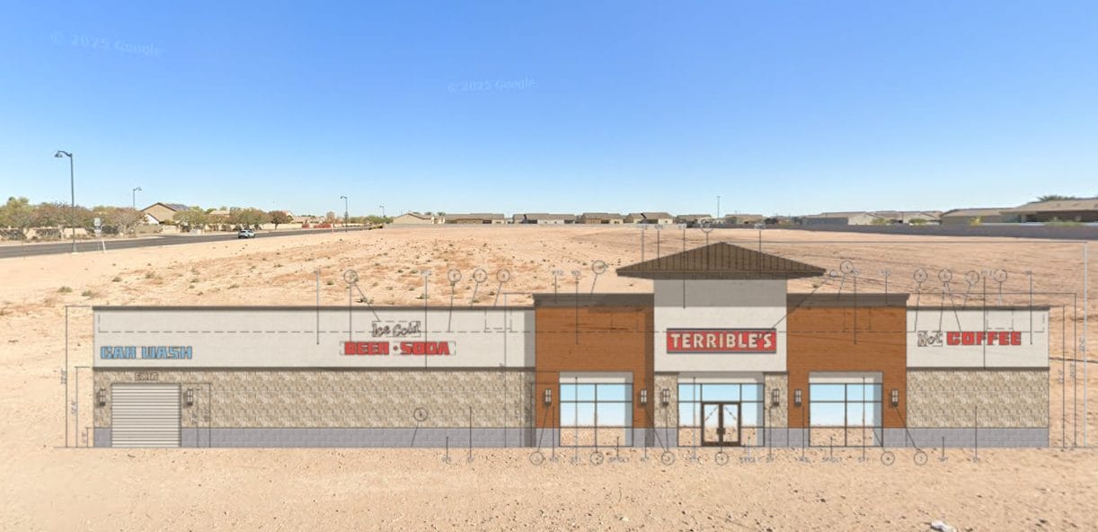 According to documents filed with the City of Maricopa’s Development Services Department on Jan. 14, the new gas station would be built on a 3.55-acre lot currently zoned for Neighborhood Commercial use. Terrible’s is requesting a rezoning to General Commercial to accommodate the expanded footprint and retail features.