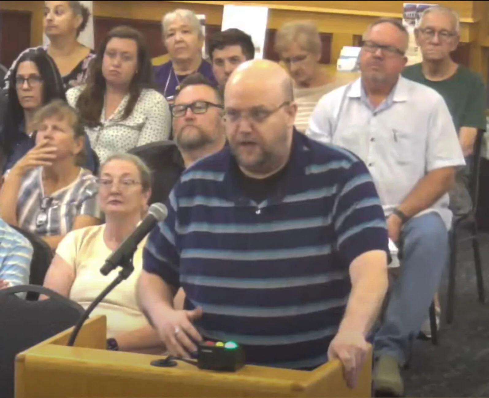 Casa Grande resident James Stilwell speaks during Thursday’s lively Planning and Zoning Commission meeting. Stilwell was part of a group of residents in opposition to an extended stay hotel planned for Ninth and Colorado streets. Via City of Casa Grande/YouTube