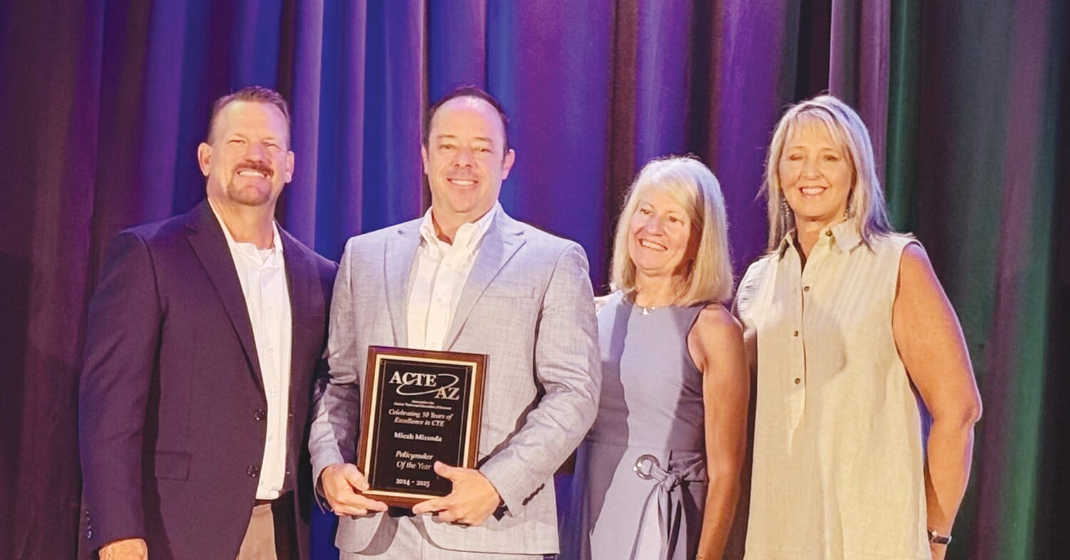 Micah Miranda was recognized as the Policymaker of the Year by the Association for Career Technical Education of Arizona. He received the award during the ACTE annual conference awards breakfast in Tucson.