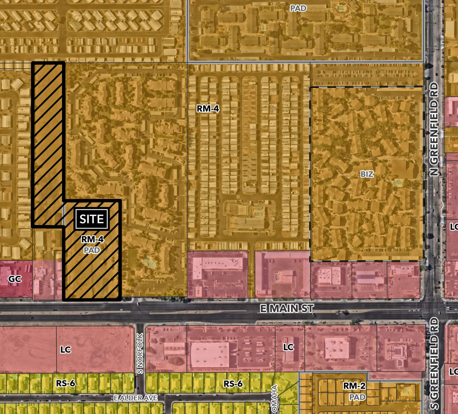 A 137-unit attached single-residence townhomes development is planned about 1,600 feet west of the northwest corner of East Main Street and North Greenfield Road in Mesa.