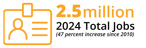 Workforce and economy -The region’s labor force is evolving, with job growth, shifting participation, and changing occupations. While top occupations saw increases, material moving occupations like truck drivers and warehouse workers experienced the largest growth since 2010 (143 percent), highlighting expansion in the logistics sector.