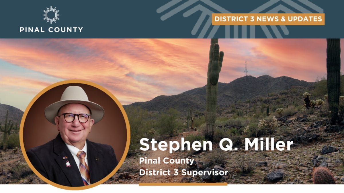 | District 3 Supervisor Stephen Q. Miller email: Stephen.Miller@pinal.gov phone:480-866-7401 | District Administrator Brandon Gaylord email: Brandon.Gaylord@pinal.gov phone:520-866-1782 | Administrative Assistant Carole Hooper email: Carole.Hooper@pinal.gov phone:520-866-7401 |