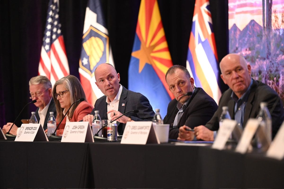 The governors of multiple western states touted their willingness to work across the aisle as they met with members of the Trump administration at a ritzy in a wealthy Phoenix suburb Thursday to discuss issues ranging from powering data centers to Congress’s Farm Bill.