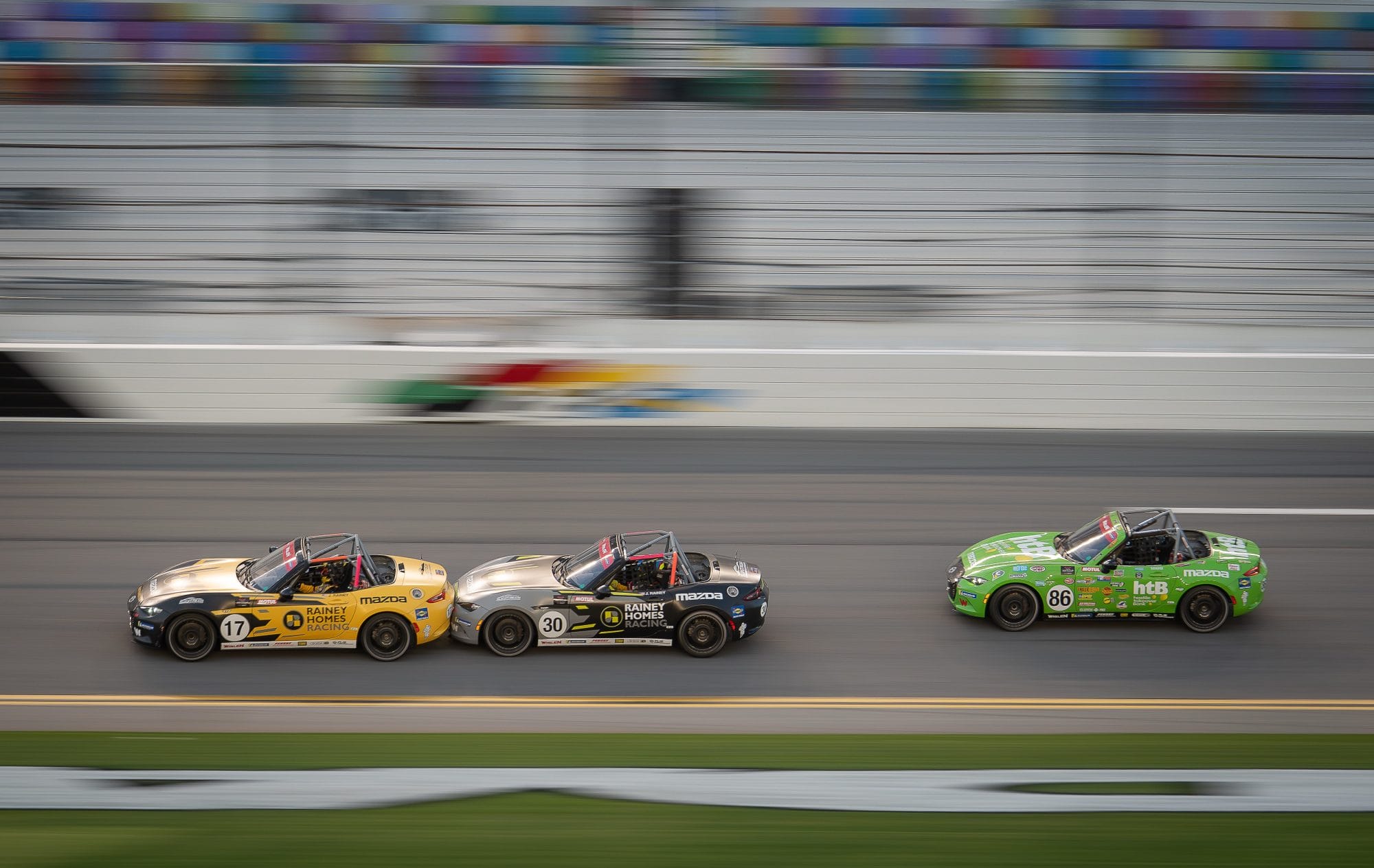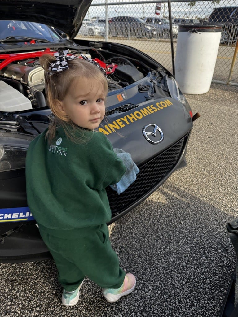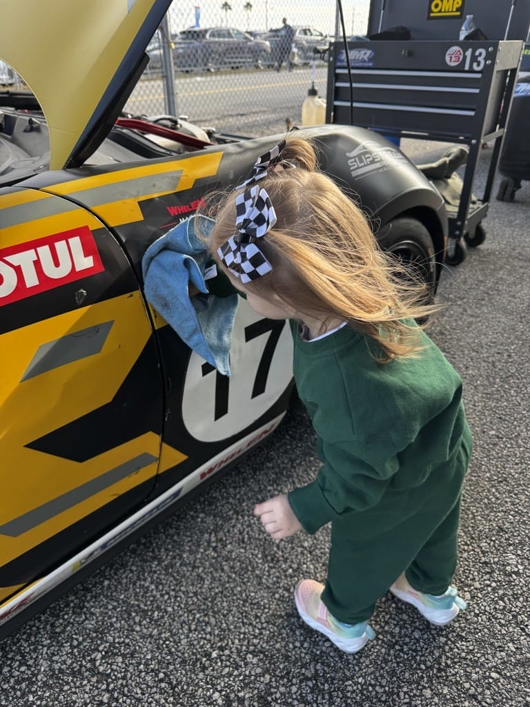 “Daytona International Speedway, somehow, exceeded all of my expectations. These photos capture the most fun part of the week: bump drafting on the banked corners. These photos are of me pushing my dad forward at 142 mph to try to catch the pack of cars down the road. And a bonus photo of my crew keeping the cars nice and clean.”