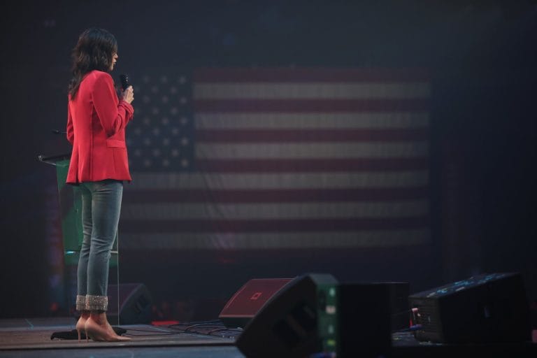 Governor Kristi Noem speaking with attendees at the 2020 Student Action Summit hosted by Turning Point USA at the Palm Beach County Convention Center in