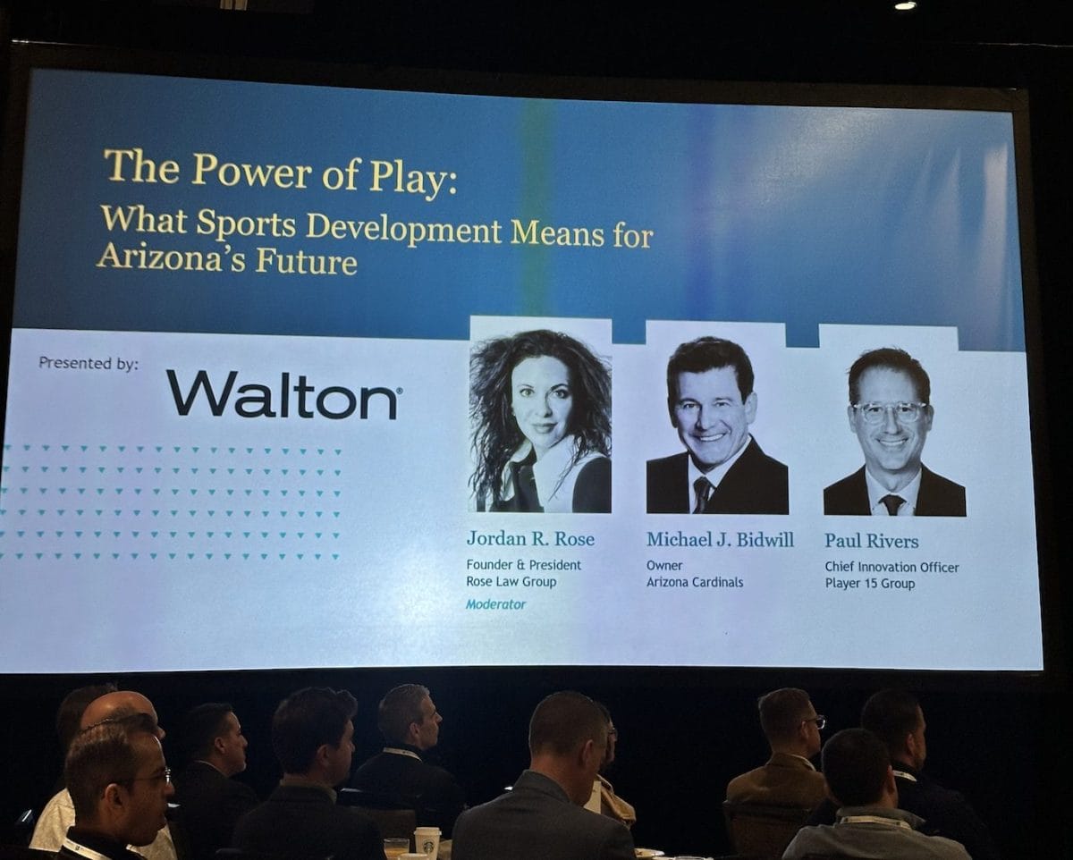 Rose led a wide-ranging conversation with Michael Bidwill, owner of the Arizona Cardinals, and Paul Rivers, chief innovation officer at Player 15 Group and a central figure in the acquisition and transformation of the Phoenix Suns.