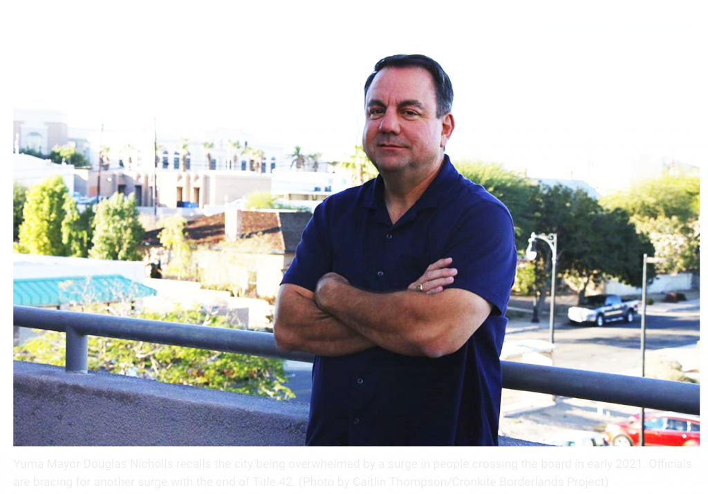 Yuma Mayor Douglas Nicholls recalls the city being overwhelmed by a surge in people crossing the board in early 2021. Officials are bracing for another surge with the end of Title 42. (Photo by Caitlin Thompson/Cronkite Borderlands Project)