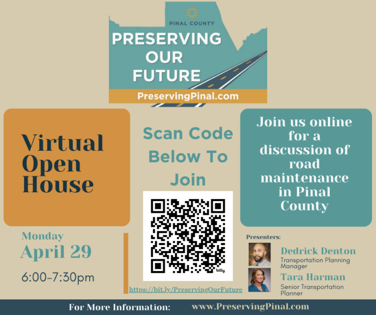 Wednesday, April 17th from 6:00PM – 8:00PM at the Casa Grande Dispatch board room located at 408 N. Sacaton St. Suite 2. This is right
