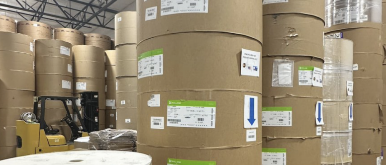 Cochise County’s ballot security paper rolls, the two stacks with the green labels in the center, are being held at Runbeck Election Services in Phoenix.