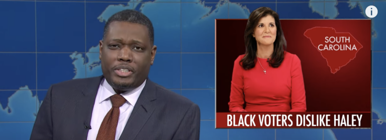Gayle King (Punkie Johnson) and Charles Barkley (Kenan Thompson) host a town hall with Donald Trump (James Austin Johnson).