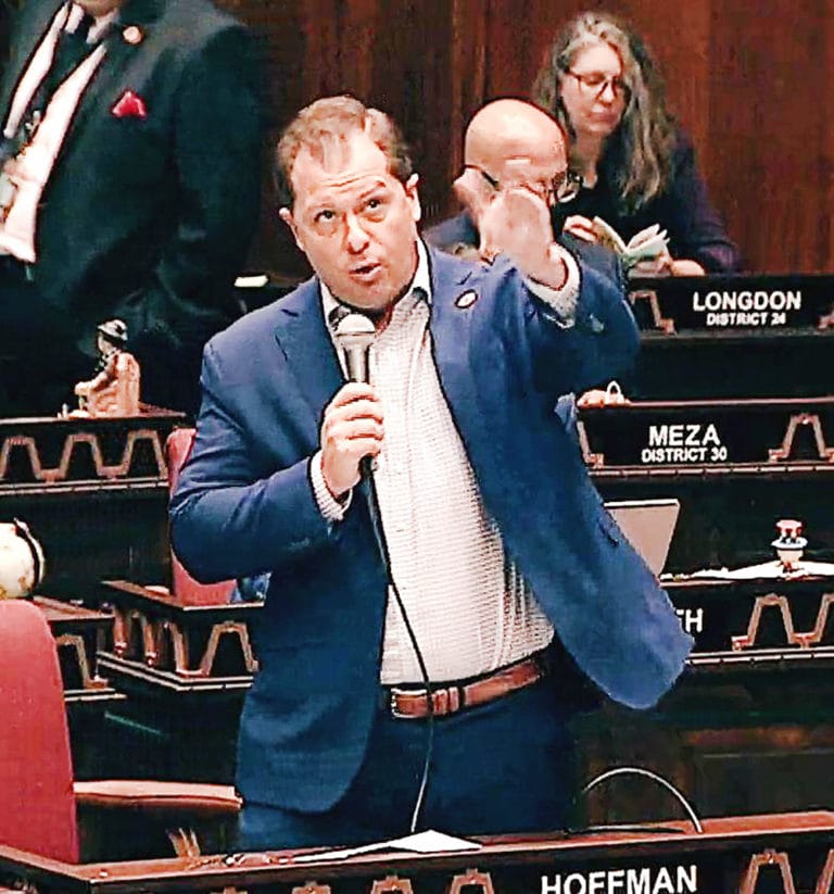 Sen. Sonny Borrelli, R-Lake Havasu City, on the floor of the Senate in 2020./ PHOTO BY HOWARD FISCHER/CAPITOL MEDIA SERVICES By Julia Shumway | Arizona