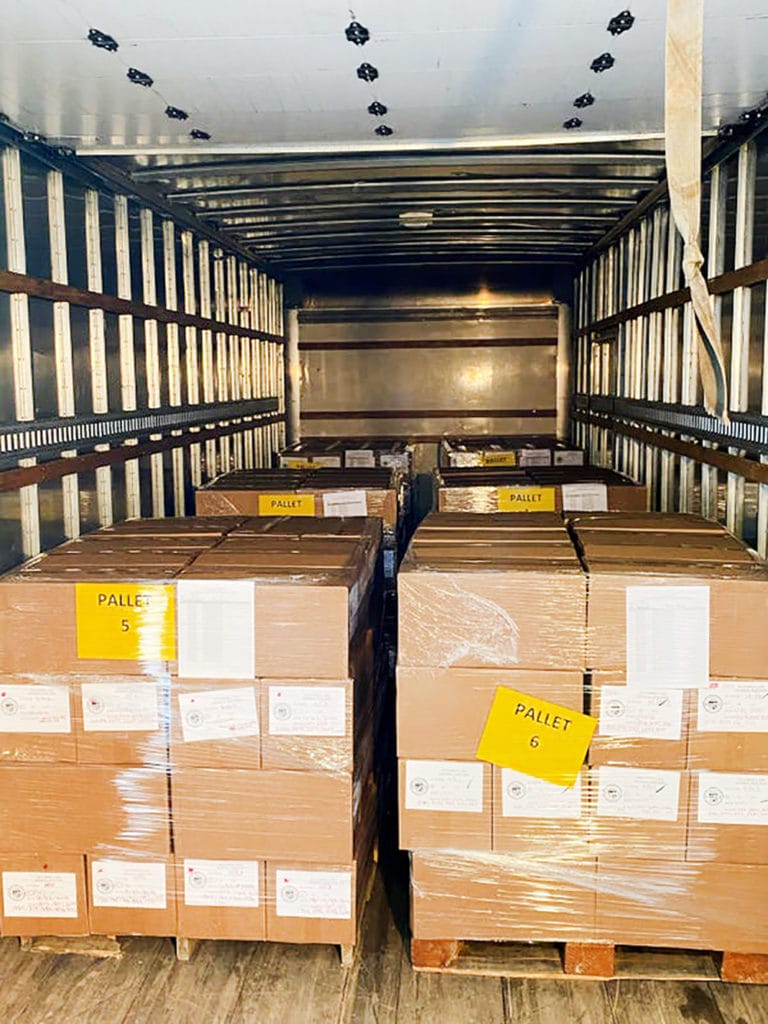 A truck is loaded with pallets of ballots from the 2020 Maricopa County election. They are ready to be delivered to the state Senate, according