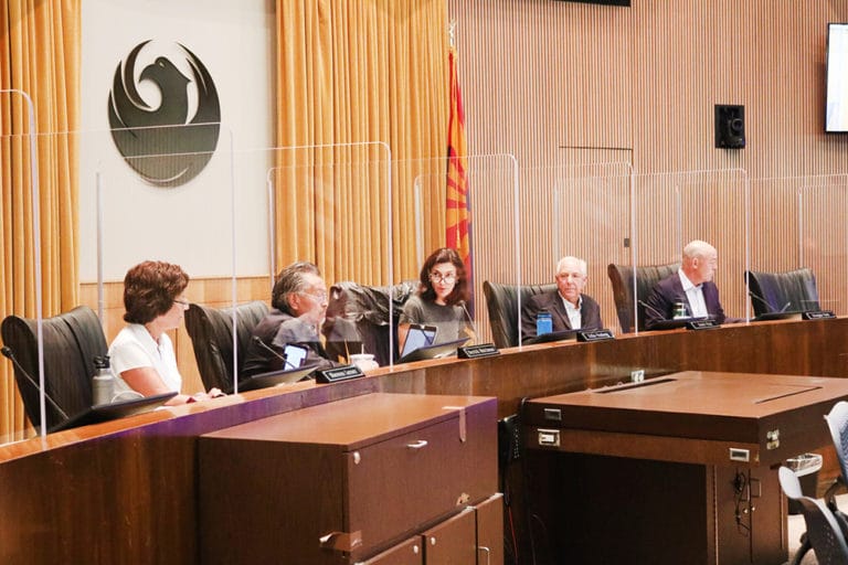 Members of the Arizona Independent Redistricting Commission met Oct. 4, 2021, in the Phoenix city council chambers to discuss initial changes to the grid maps