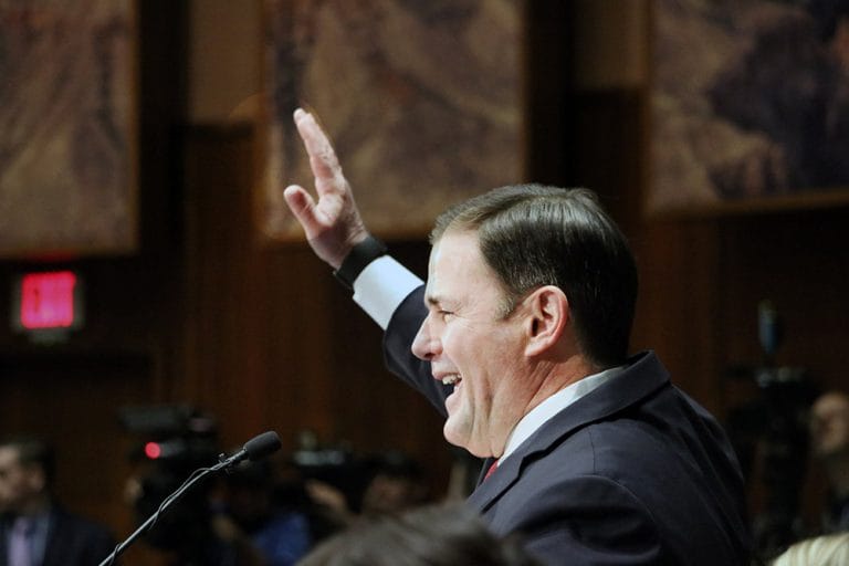 Gov. Doug Ducey greets lawmakers and guests shortly before beginning his State of the State speech on Jan. 13, 2020. /Photo by Jerod MacDonald-Evoy /