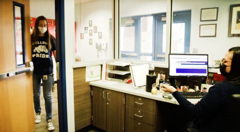 A still from a video released by Mesa Public Schools in December 2021 demonstrates a recently installed secure front entry system at Booker T. Washington
