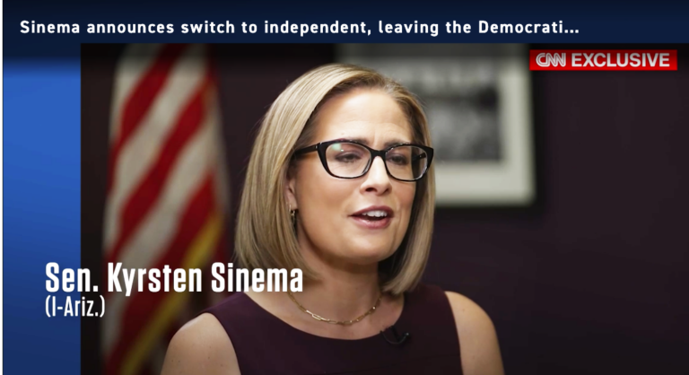 The Arizona senator says she is “absolutely” done with parties.|| Screenshot CNN KELLY GARRITY Politico Sen. Kyrsten Sinema is facing challenges from the right and