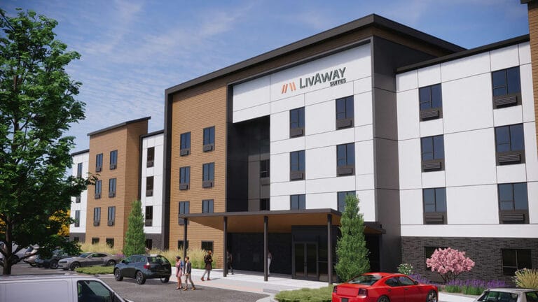 Rendering via LivAway Suites By InBusiness Phoenix LivAway Suites and West77 Partners have announced the groundbreaking of a new extended-stay hotel in Tolleson, Arizona, marking the first step in