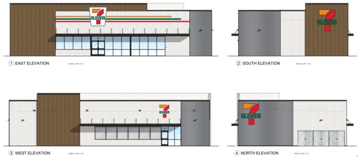 A screenshot of the elevation plans for a new 7-Eleven convenience store and gas station on Honeycutt and White and Parker Roads. [City of Maricopa] By Jeff Chew |