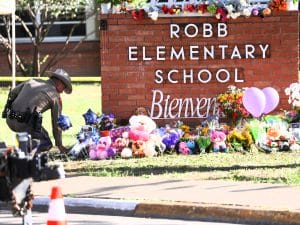 A view from the makeshift memorial in front of Robb Elementary School in Uvalde, Texas. /Yasin Ozturk/Anadolu Agency via Getty Images Opinion: Several Arizona Republicans