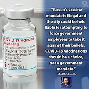 Arizona’s Attorney General said Tuesday that the City of Tucson’s recently passed COVID-19 vaccine mandate violates state law, calling for it to be repealed/Posted by