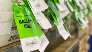 Postal bins with tags for ballots in the 2020 general election./Courtesy Maricopa County Elections Department Many municipalities, including Tucson, have embraced the practice. By Andrew