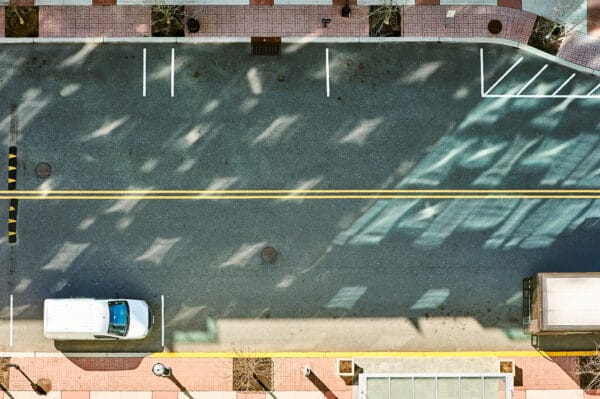 Electric Passenger Drone flying in front of buildings. This is a 3D model and doesn’t exist in real life. 3D illustration Jakob Thorington Arizona Capitol