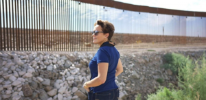 Kari Lake at the border wall./Campaign photo By Stacey Barchenger | Arizona Republic Arizona Gov. Doug Ducey is responding to criticism from gubernatorial candidate Kari