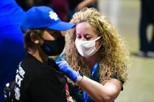 Dr. Cara Christ administers vaccine to a teenager./Facebook By Howard Fischer | Capitol Media Services The state’s top health official said schools should be able to