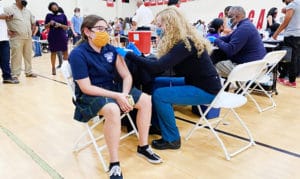 Arizona Department of Health Services Director Dr. Cara Christ administers the COVID-19 vaccine at the Roosevelt School District’s C.O. Greenfield School in south Phoenix on