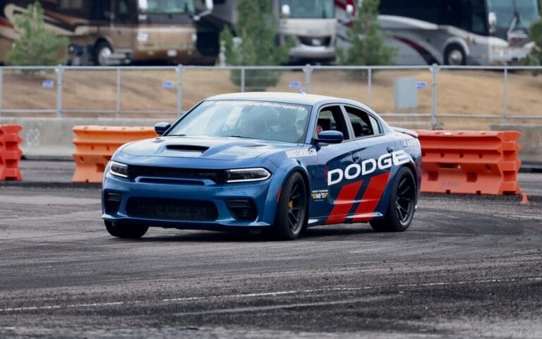 Attendees explore the Radford Racing School exhibit at the Barrett-Jackson car auction to learn more about driving high-performance vehicles. (Photo by Joe Eigo/Cronkite News) (Disclosure: