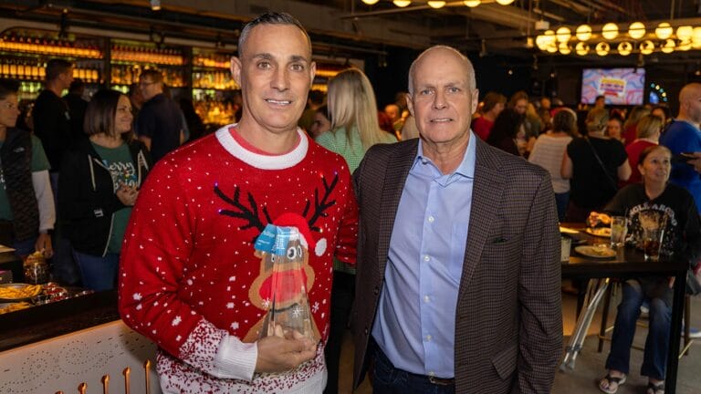 Meritage Homes CEO Phillippe Lord accepts the 2023 Partner of the Year Award from Arizona Housing Fund Founder Howard Epstein (Photo courtesy of Meritage Homes)