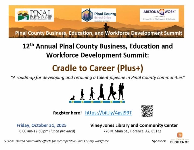 You are invited to the 12th Annual Pinal County Business, Education, and Workforce Development Summit. We will be exploring a Cradle to Career Plus+ roadmap